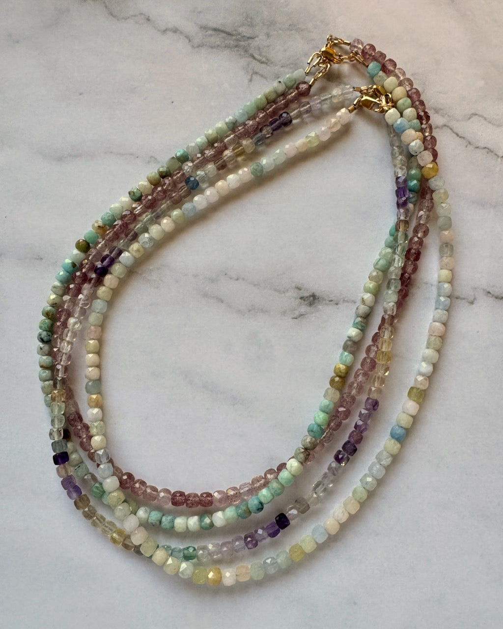 Beautiful natural gemstones, cut and faceted to deliver the greatest sparkle and shine. Your choice of Amazonite, Fluorite, Morganite or Red Star Quartz. Makes a great addition to layering necklaces!